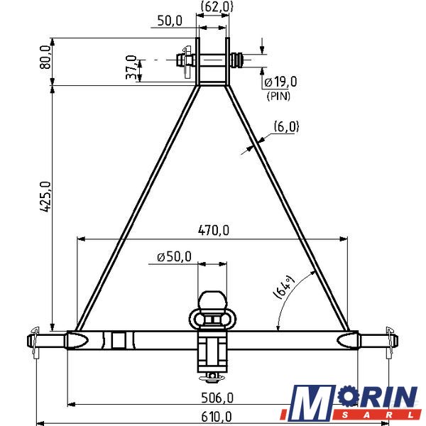 Attelage 3 points avec barre à trous, boule remorque et chape